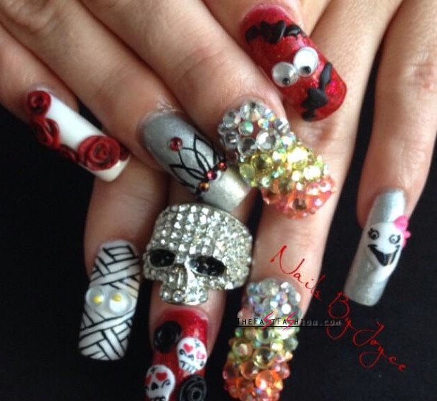 I guess it was a big, boring debate on why we celebrate Halloween day every year and why we must participate in the parties, now let’s discuss why it’s necessary to wear some Halloween nail art designs and why your fingernails must go with your dress. If you are spending some hundreds of dollars into buying a nice yet odd Halloween costume, you must try to adopt your character fully by focusing on your fingernails as well. There are so many horror nail art designs to wear and try out there, but ones which are easy to make should be considered first just in case nail salons are too cluttered during Halloween to provide you service.