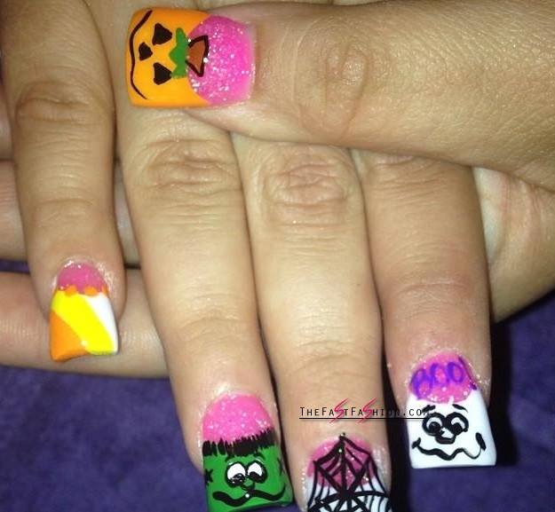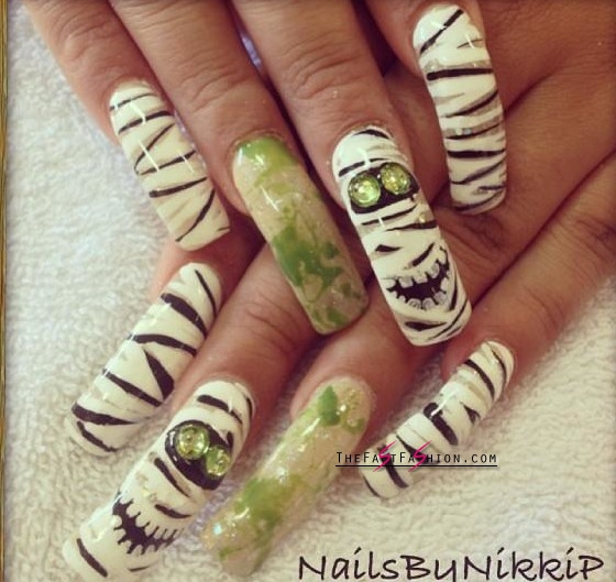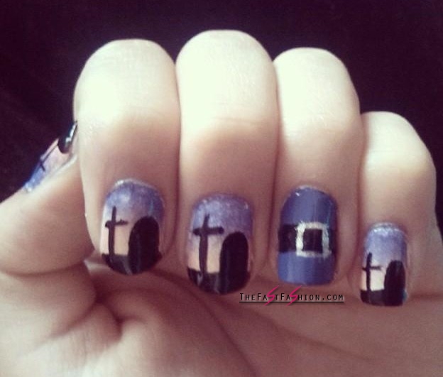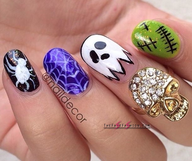 I am going to share some timeless and spooky Halloween nail design ideas, created by creative ladies without help of nail art experts. Some of these horror designs are roughly painted but at least they are much attractive than those we have already seen or tried, never mind, they are rough but not tough to create.