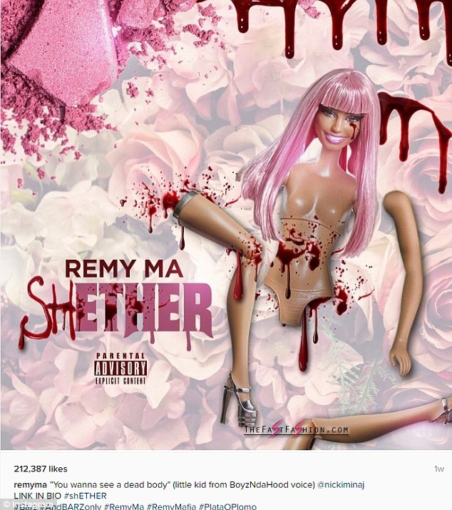 She started it: The rap rivalry between the pair – who had at one time been friendly – really kicked off last month when Remy dropped track shETHER which was inspired by the famous diss track by Naz about Jay Z called Ether