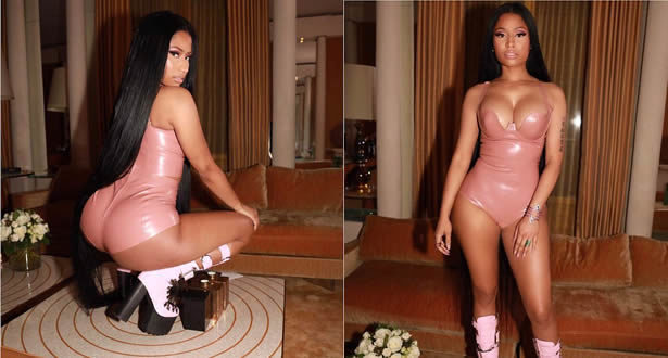 Saucy in salmon: Nicki Minaj took to Instagram on Sunday to share some very sexy snaps of herself in a clinging pink bodysuit