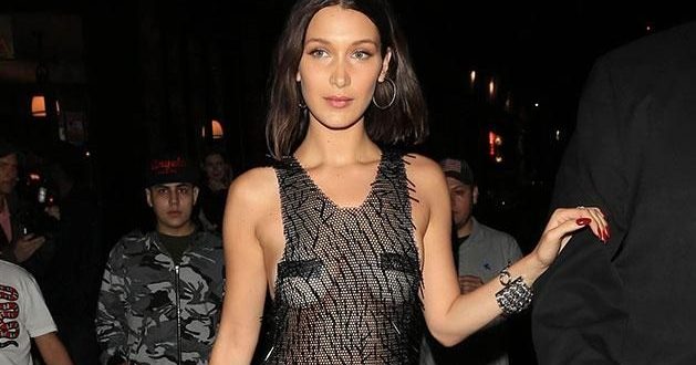 Taking the naked dress trend quite literally, the model and younger sister of Gigi Hadid wore nothing but a pair of high-waisted knickers and completely sheer mini dress that looked more like an oversized tank top.