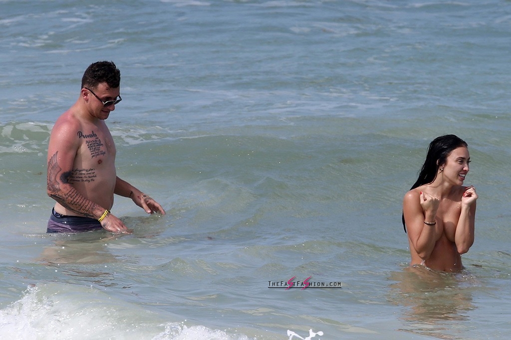 For some incredible reason, the women all decided to lose their tops for a quick dip in the ocean while Johnny was hanging out and taking in the sights.