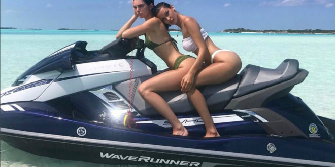 Of course, they made time for sunbathing on a yacht and riding jet skis. (If you’re curious, Kendall wore an olive green suit by Montce and Bella’s white thong was from Mary Grace Swim)