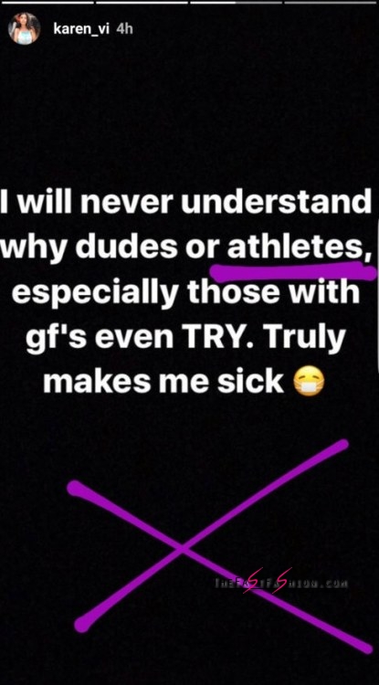 Karen Vi clearly didn’t appreciate that Bell was flirting with her when he had a girlfriend and a baby at home. So, she exposed this millionaire athlete for the thirsty man trolling for hotties on Instagram. See Karen Vi’s response below.