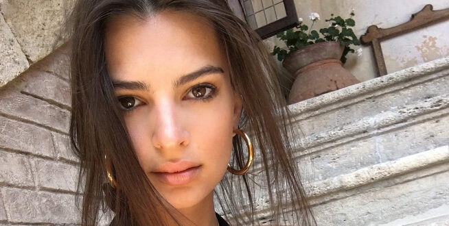 Emily Ratajkowski is on vacation somewhere beautiful, and you can bet she packed a few swimsuits for the trip. While visiting a hot spring, the star slipped into a black one-piece with a plunging neckline, which she wore with layered necklaces. Though the front of her Peixoto swimsuit was revealing, the back was even sexier. It featured a scooped back and a cheeky thong fit that showed off Emily’s assets. Her friend even playfully left a muddy handprint on Emily’s buttocks. Scroll on for a closer look at the star’s sultry one-piece.