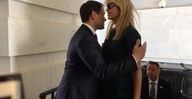 Florida Sen. Marco Rubio probably started out his day Tuesday thinking about paid family leave, child care tax credits and other deep issues. But when Twitter went wild over an awkward photo of him leaning in for a hug with Ivanka Trump when she arrived for a Capitol Hill meeting, Rubio was smart enough to play along.