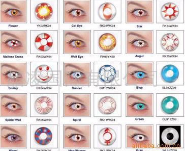 These include the popular black, white and yellow special-effect scleral contact lenses, as worn on the cult TV show True Blood; red and amber colored contacts like those worn in Twilight, New Moon andBreaking Dawn; and Goth contact lenses in patterns of red, black, white and yellow which channel The Exorcist.