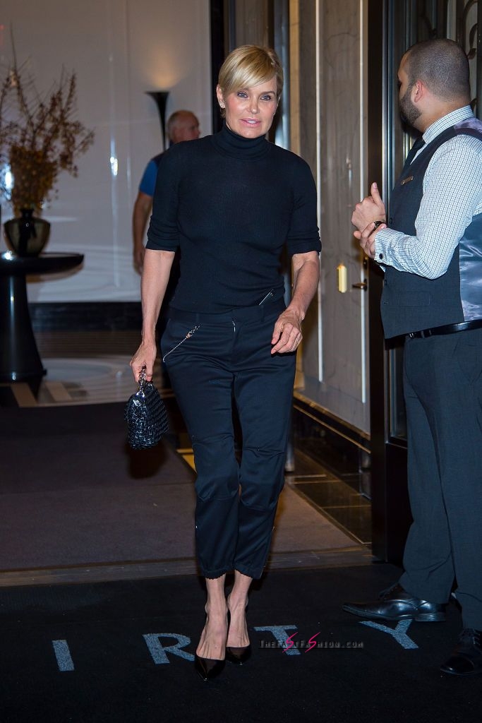 She stepped out with big sis Gigi and their mother Yolanda, both fashion icons their own right. Gigi wore a striking baby blue jumper with matching jacket and pumps, letting her sister have the spotlight of a birthday LBD. Yolanda kept her look simple, in a black turtleneck and cropped black slacks.