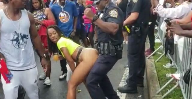 Two of New York’s finest were grinded on in the line of duty Monday as they protected the throngs of people who showed up for Brooklyn’s West Indian Day Parade, video of the dance moves shows.