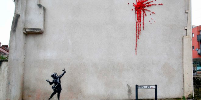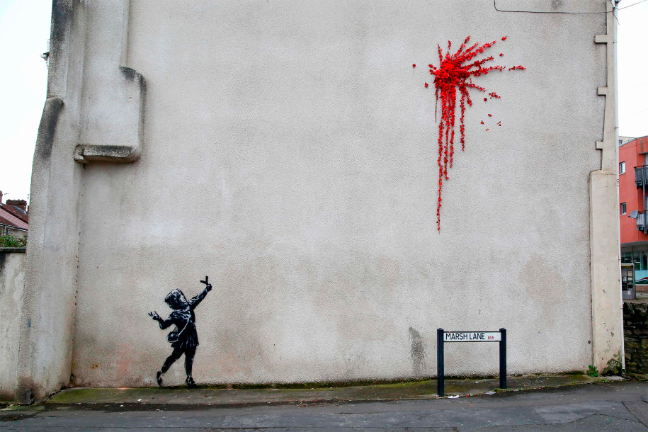 The UK mural — showing a young girl firing a slingshot that exploded into a burst of red flowers growing on the side of a house — was confirmed to be a genuine Banksy work on the artist’s Instagram page at midnight.