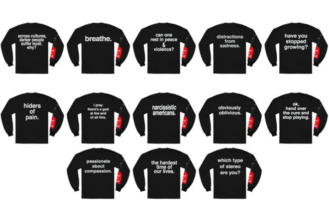 On Wednesday, the 45-year-old Atlanta artist released a collection of T-shirts emblazoned with many of the same messages seen on his iconic stage outfits, including, “can one rest in peace & violence?” and, “across cultures, darker people suffer most. why?”
