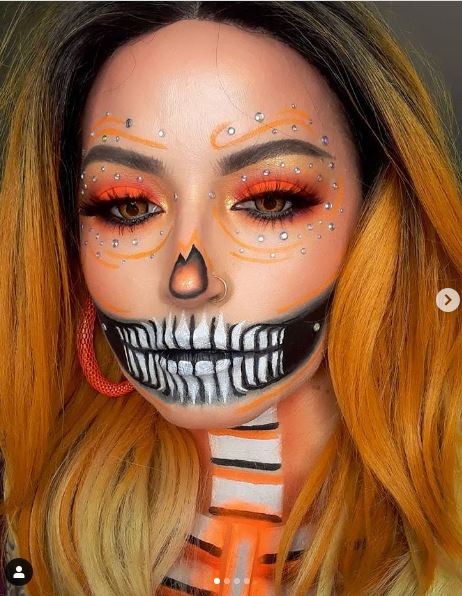 Creating the look of a skull on your face is easier than you might think, and the options are endless when it comes to styles, colors, and overall looks. By utilizing extreme contouring and shadowing, your favorite makeup products can be used to create an incredibly lifelike skeleton costume. If you need some inspiration this year, take a look at the most stunning skeleton faces we’ve seen on Instagram — each is totally gorgeous and totally terrifying in its own way.
