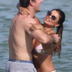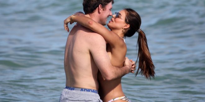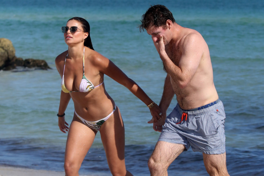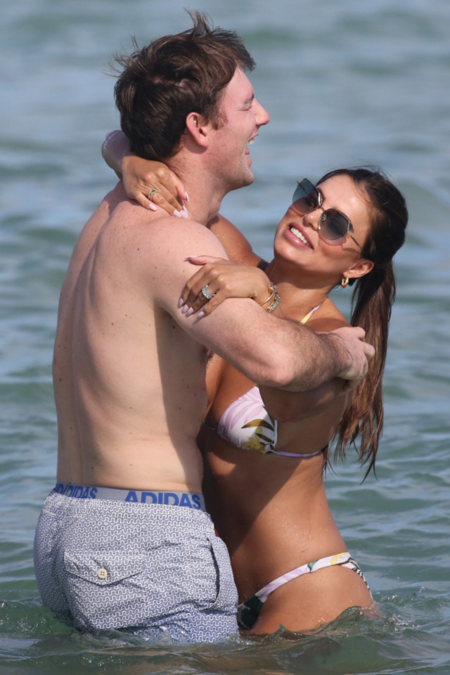 The pair spent time frolicking in both in the sand and sea as well as resting in the shade of their cabana for more cuddles. Ah, young love.